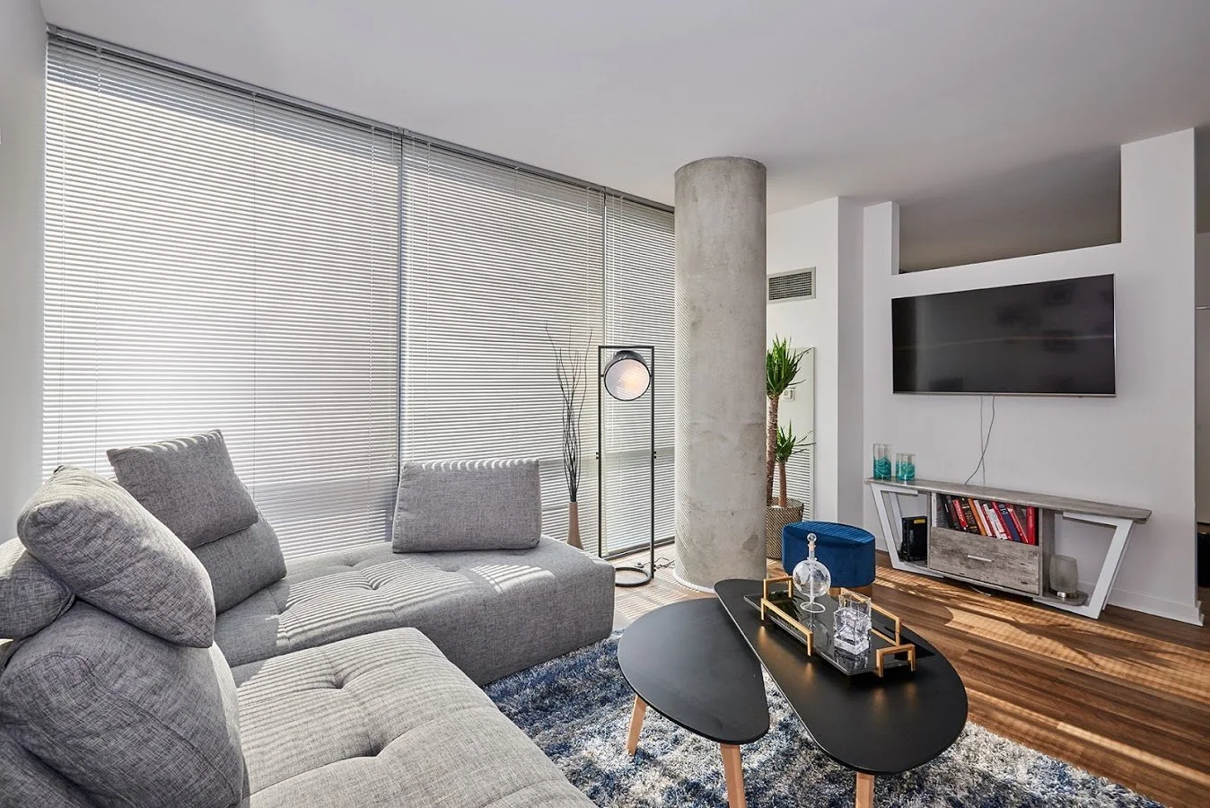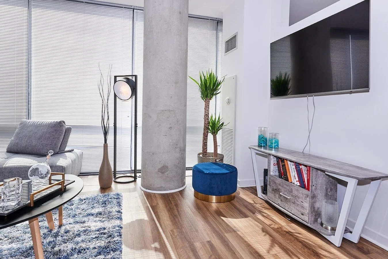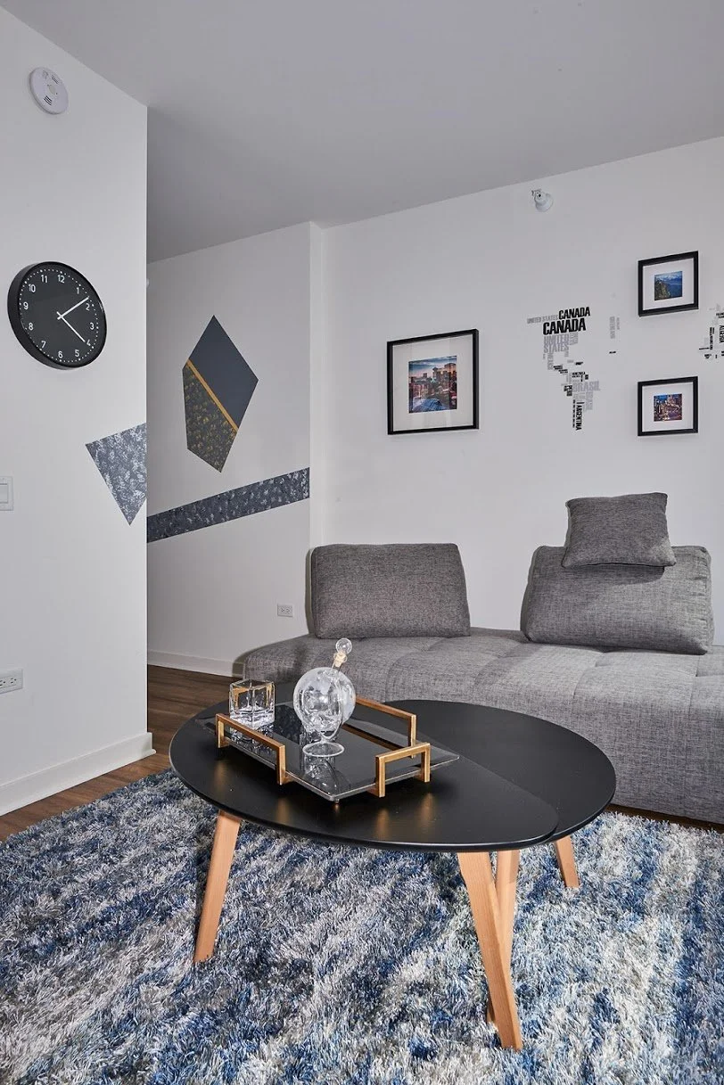 This stylish Bachelor Pad was meticulously designed by Perpetuum Designs in the vibrant city of Chicago, Illinois. Despite its smaller size, this space exudes a sense of openness and sophistication, thanks to the abundant natural light pouring in through the large windows. The clever use of light colors, combined with black and grey accents, creates a harmonious and contemporary ambiance.