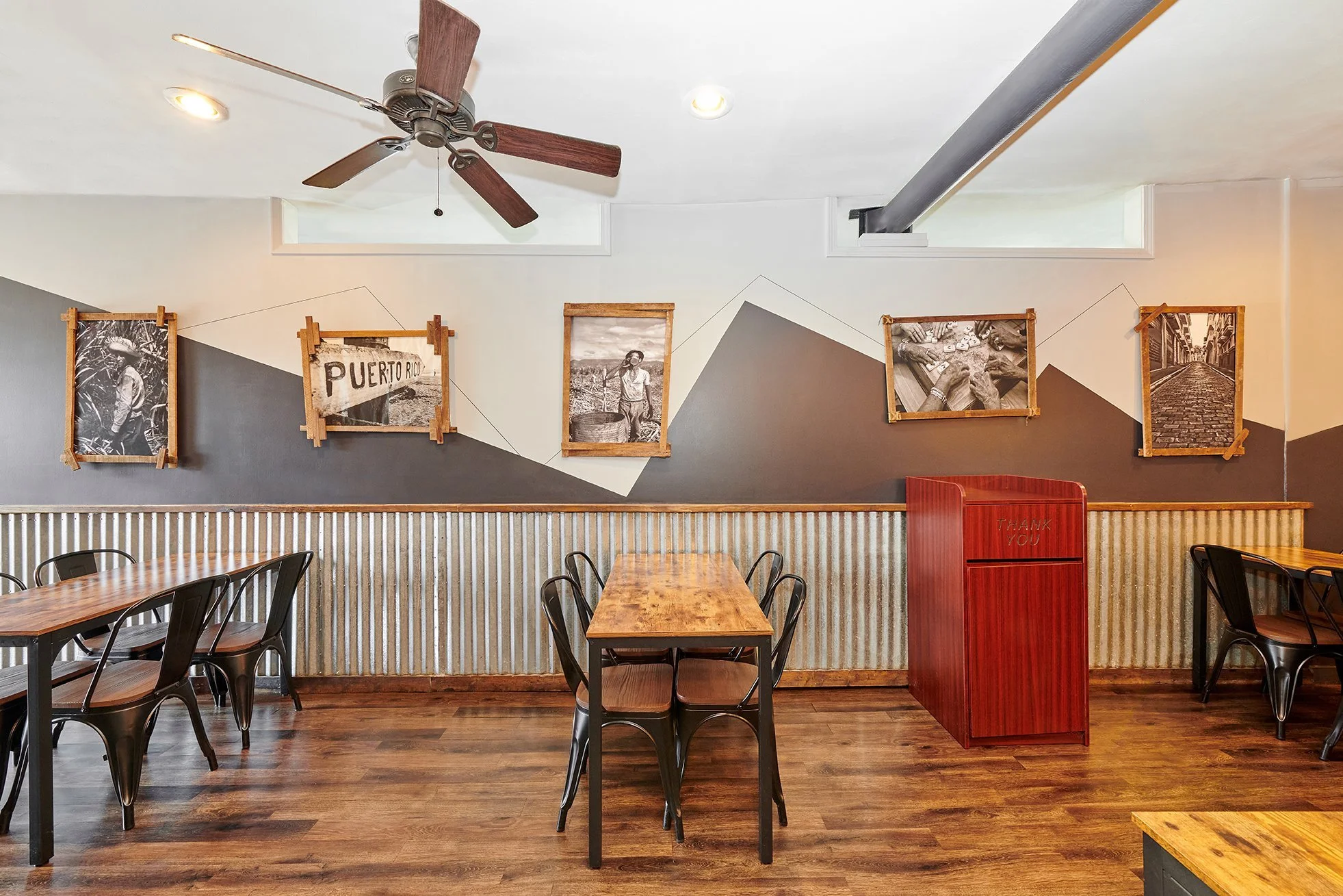 The Puerto Rican accents that adorn the restaurant serve as a visual feast for the senses. From traditional artwork, framed to highlight even more the history and heritage of the owners, and carefully placed murals, to decorative elements inspired by Puerto Rican craftsmanship, every detail reflects the authenticity and cultural pride of the cuisine being served. These accents create a sense of place and time, and transport guests to the native land of Puerto Rico, even if just for a meal.