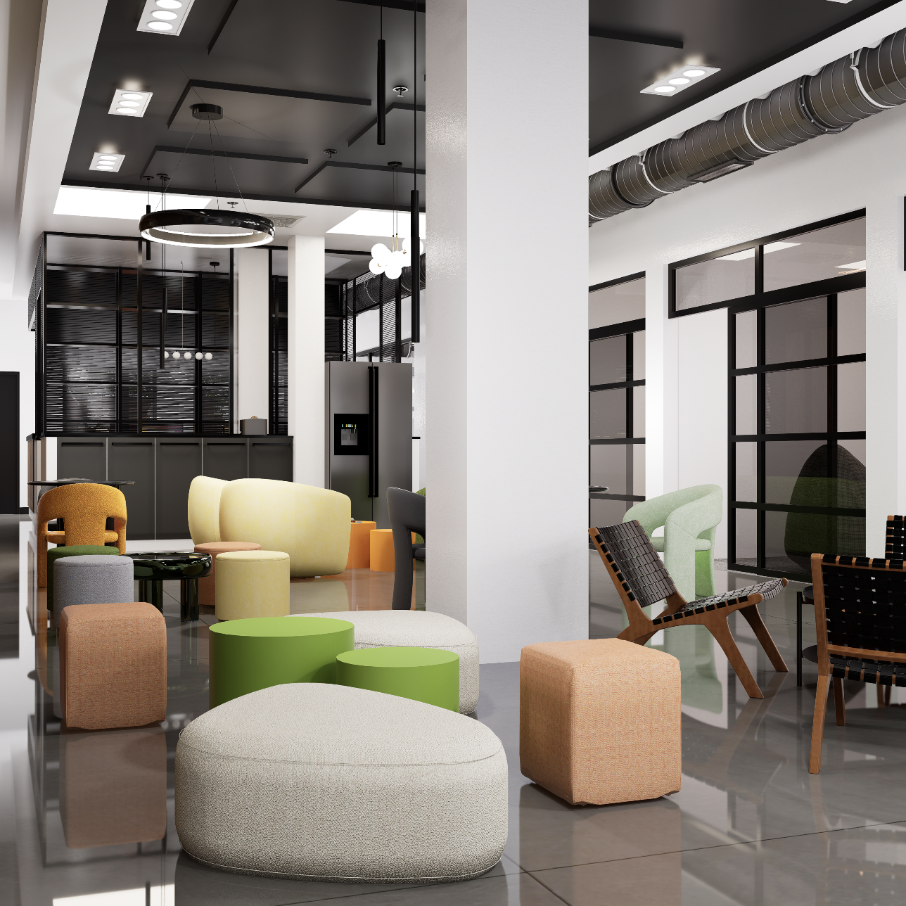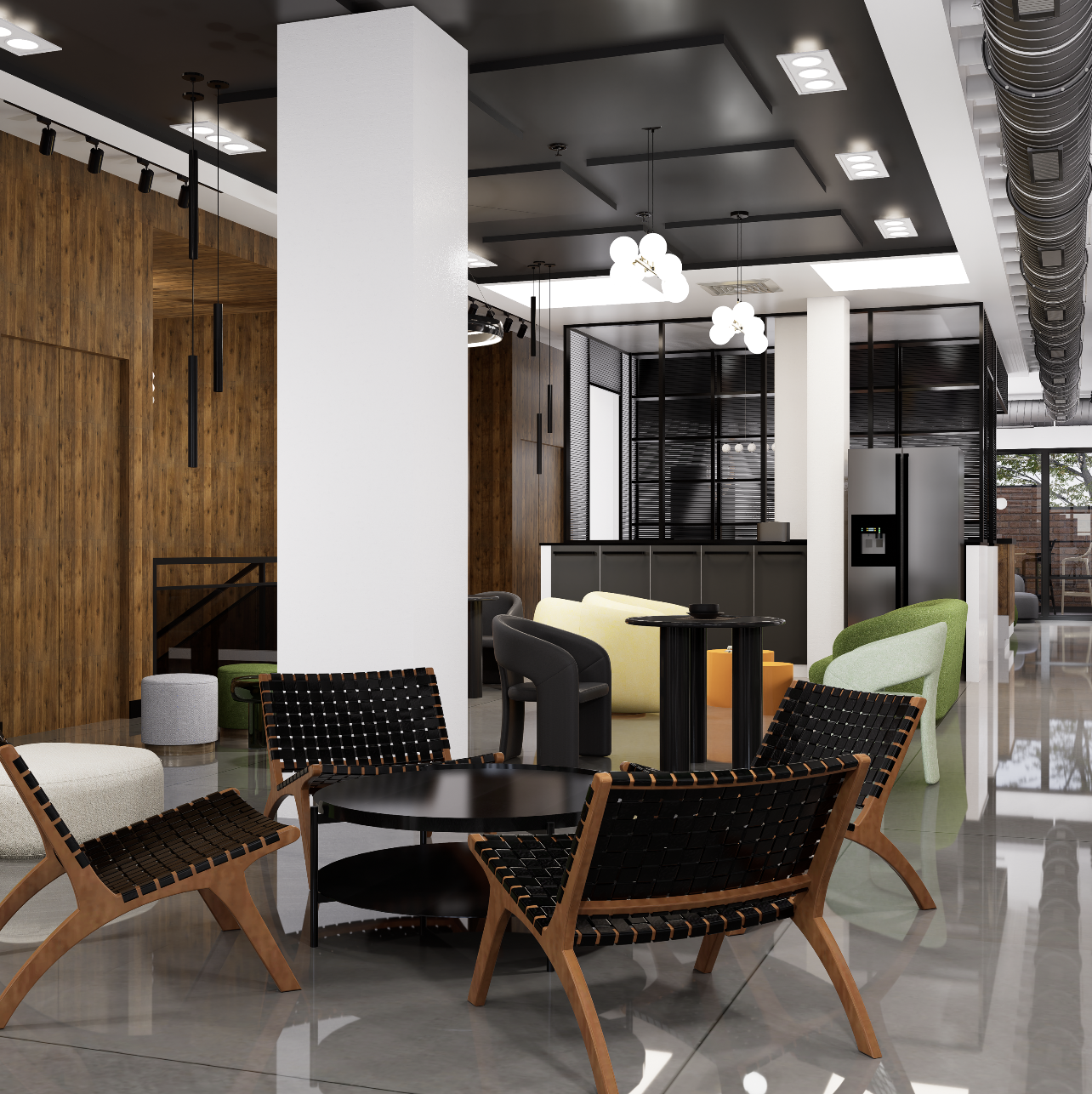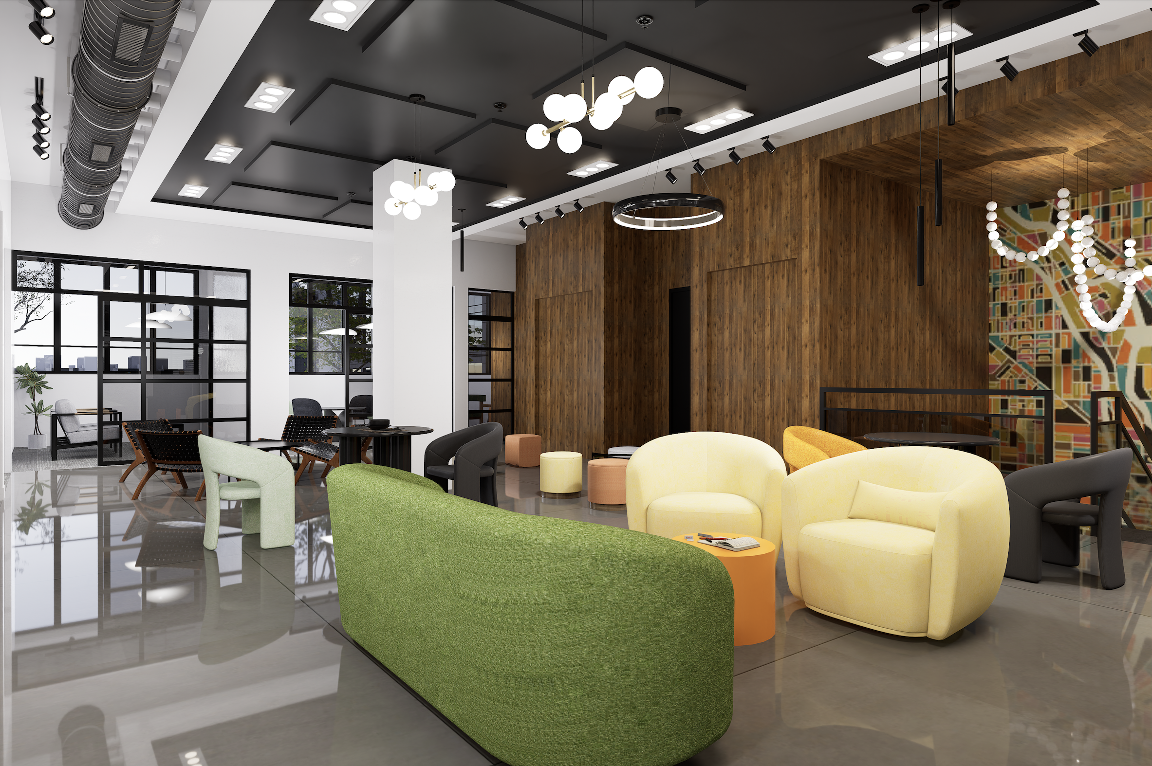 Furniture selection plays a critical role in social club interior design. Ergonomic meeting chairs, sculptural coffee tables, and layered lighting fixtures were selected to elevate comfort and functionality. Proportion, scale, and spacing were carefully studied to maintain flow while maximizing usability.