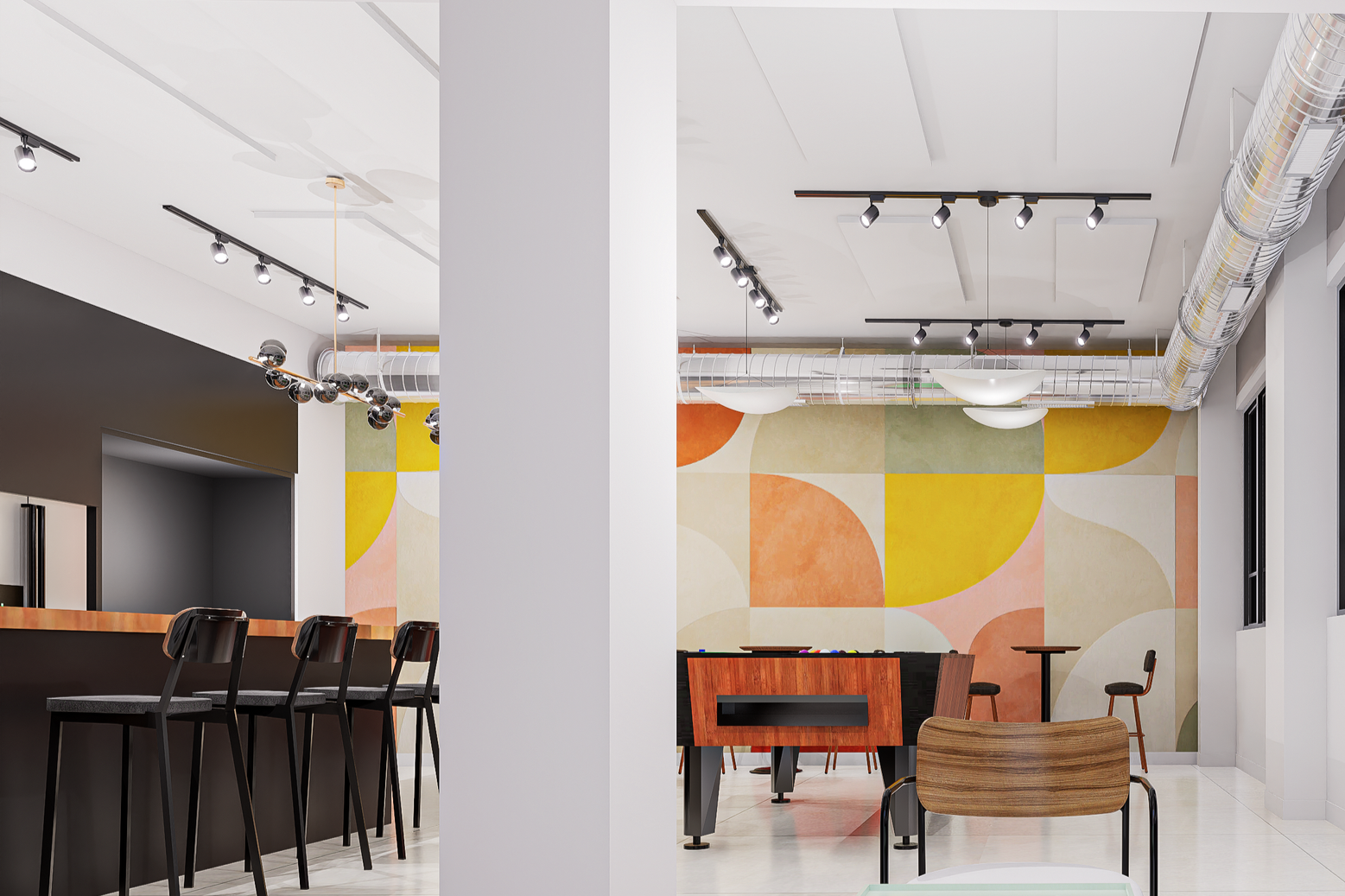 Even the integration of recreational elements, such as the billiards area, was intentional. In modern co-working design, moments of decompression are not distractions—they support creativity and relationship building. By placing these elements within the overall design language, the space maintains professionalism while encouraging connection.